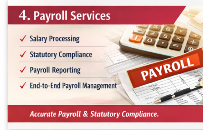 Payroll Services We deliver reliable payroll processing and statutory compliance management to ensure seamless employee compensation administration Salary Processing Monthly payroll calculation Allowances & deductions management Incentives & bonus processing Payslip generation Statutory Compliance PF calculation & filing ESI compliance Professional Tax compliance TDS deduction & filing Payroll Reporting Salary registers Compliance reports Year-end Form […]